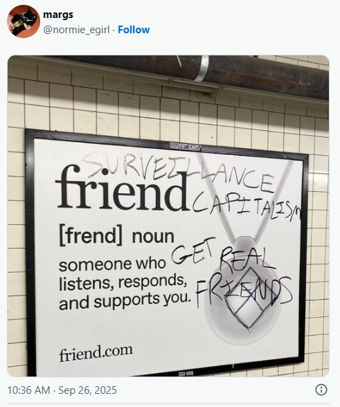 A Wired magazine writer publicly denounced the product with the headline "I hate my friend," while some ads have been vandalized with slogans like "surveillance capitalism" and calls to "find real friends."