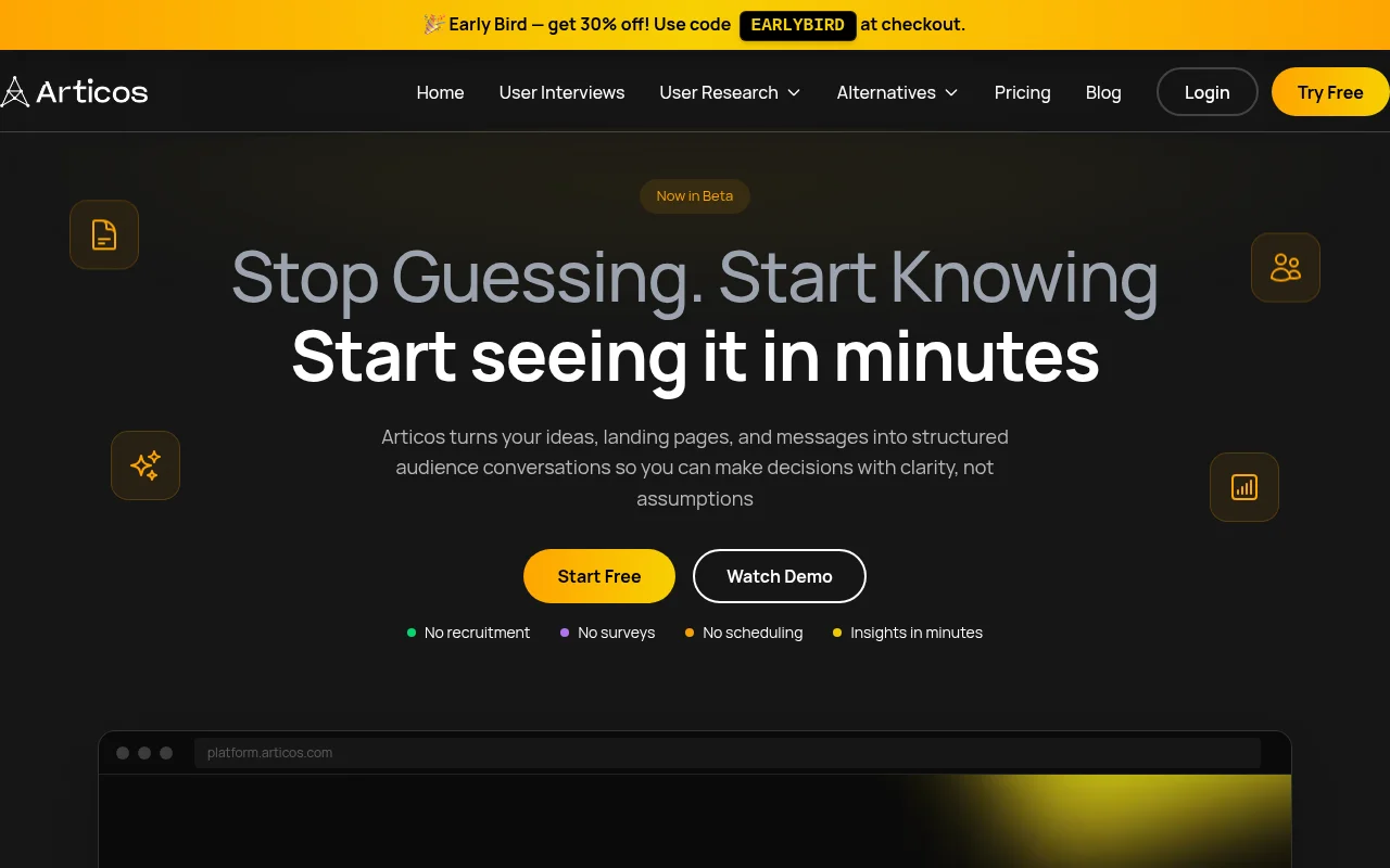 Remember waiting weeks for focus group results? By the time you got feedback, your campaign might already be outdated. That's where Articos changes the game - delivering authentic user insights faster than you can schedule a real interview.