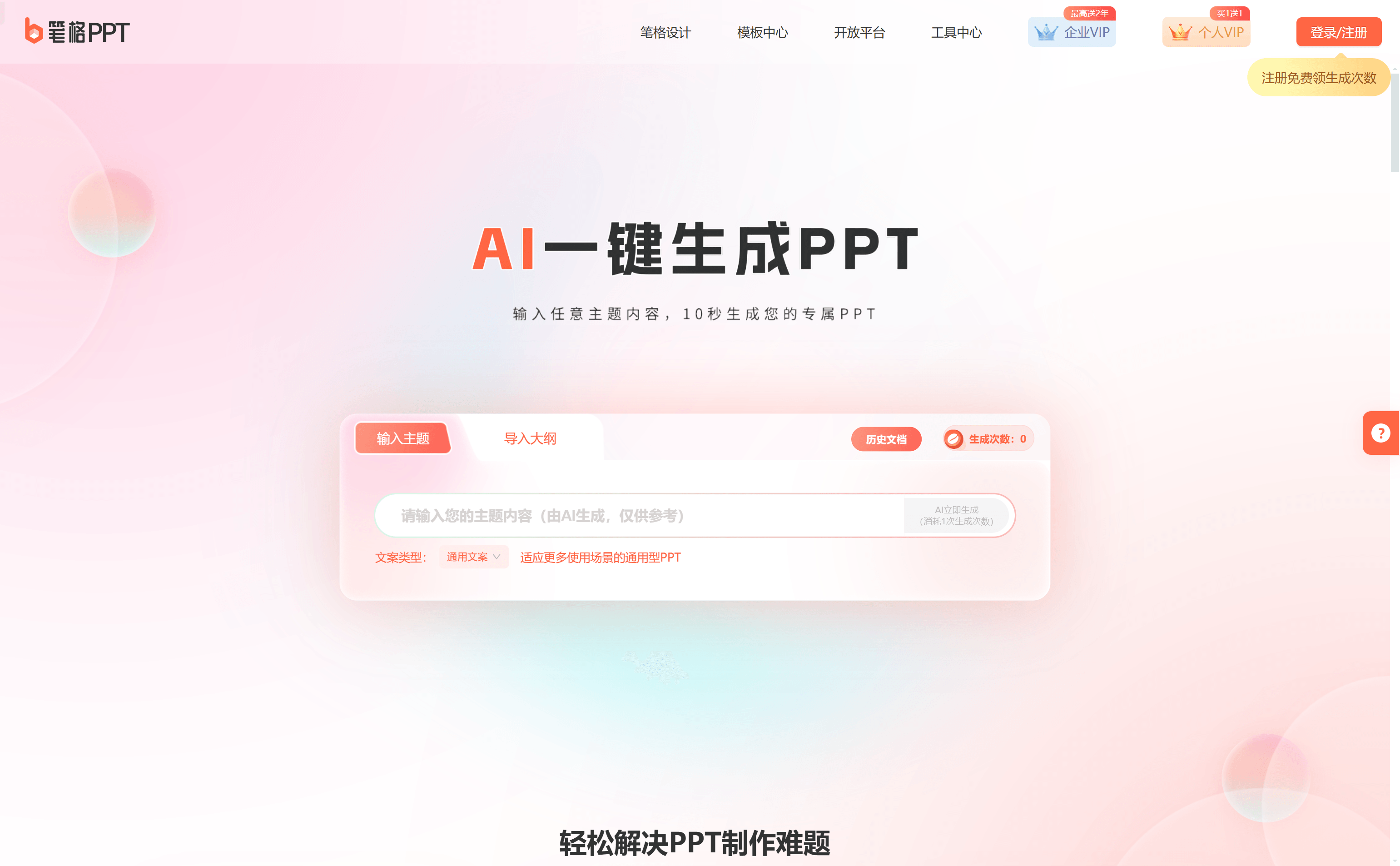 - AI-Driven Production: Automatically generates PPT outlines based on user input, reducing traditional PPT creation time.