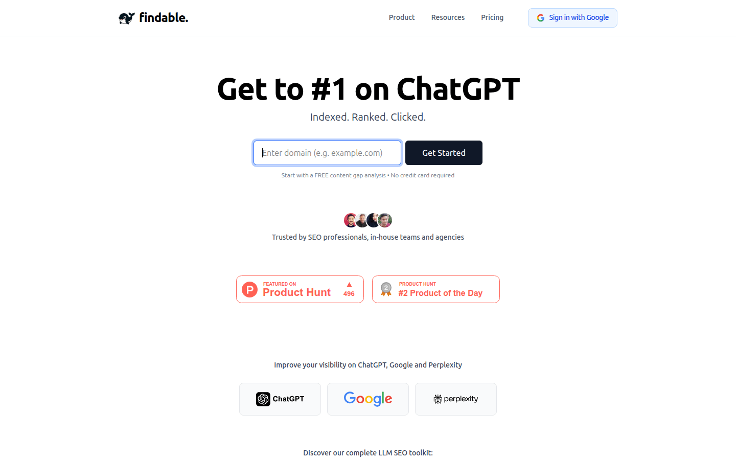 findable is a powerful tool aimed at improving visibility in AI search results. It provides a suite of features designed to analyze content gaps, monitor search queries, and generate reports to track performance across multiple platforms. Whether you're an SEO expert or a digital marketer, findable equips you with the tools needed to stay ahead in the competitive landscape of AI-driven search.