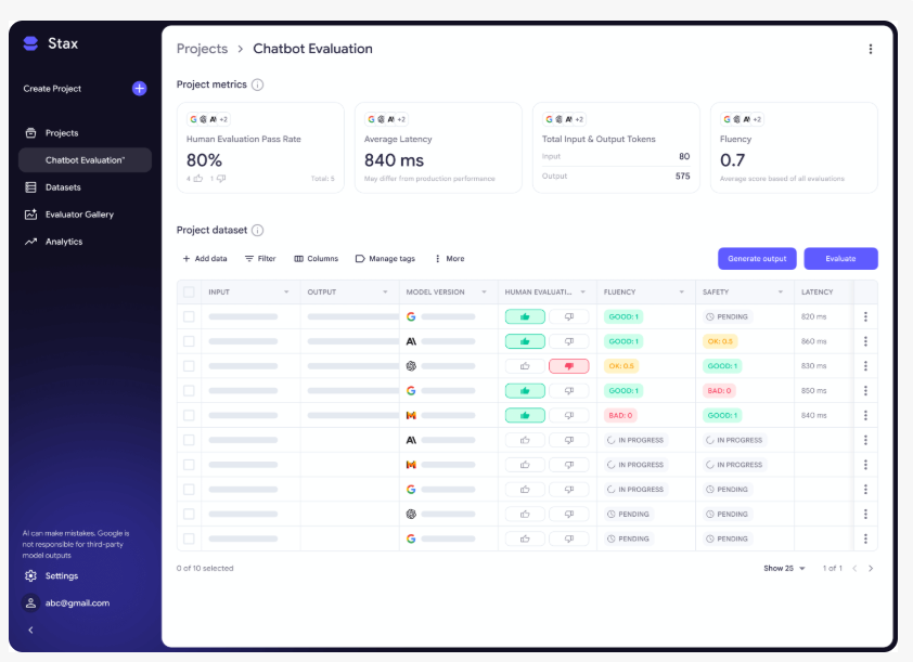 While leaderboards and general benchmarks track high-level model progress, they often fail to reflect domain-specific requirements. For instance, a model excelling in open-domain reasoning might underperform in legal text analysis or compliance summaries. Stax allows developers to define custom evaluation processes tailored to their use cases.