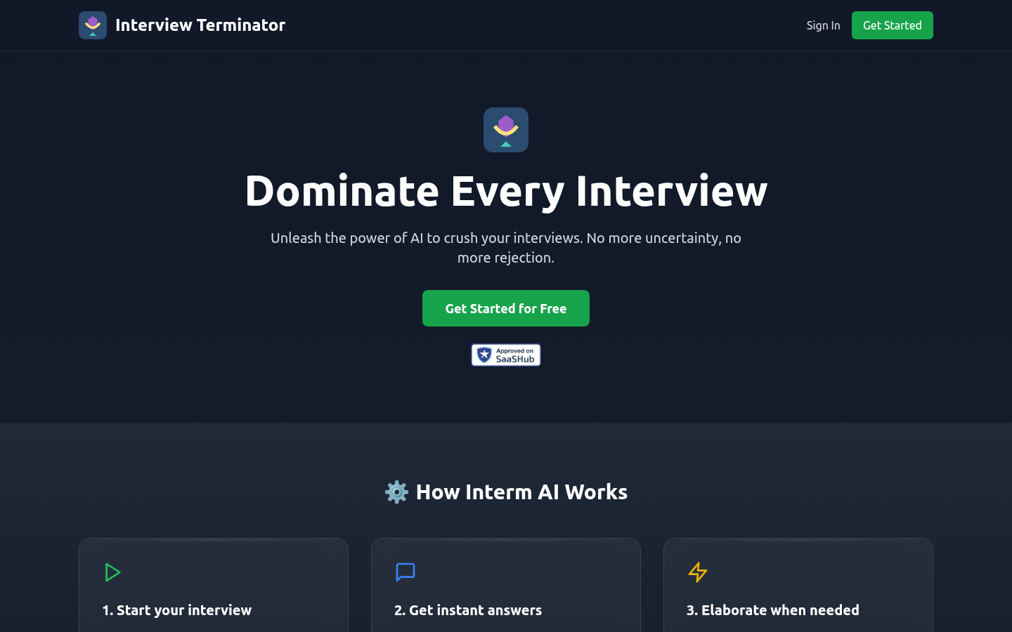 • Confidence-building tools: Helps users maintain composure and sharpness throughout interviews