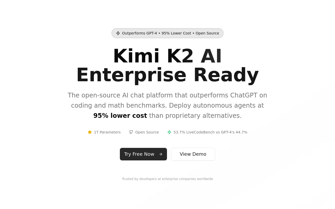Kimi K2 AI is a cutting-edge, open-source chat platform designed to deliver superior performance in programming and mathematical benchmarks, surpassing even GPT-4. It offers enterprise-level AI solutions with a significant cost reduction of 95%, making it an economical choice for businesses and developers. The platform is versatile, catering to diverse needs such as customer service, education, and personal assistance.