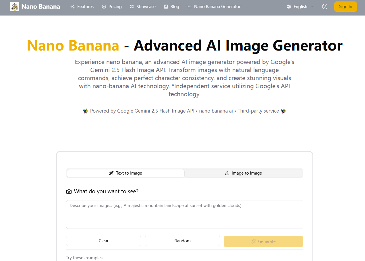 nanobanana.ai is a cutting-edge AI platform designed for image generation and editing using natural language processing. Built on Google's Gemini 2.5 Flash Image API, it offers professional-grade solutions for creating high-quality visual content suitable for commercial applications.
