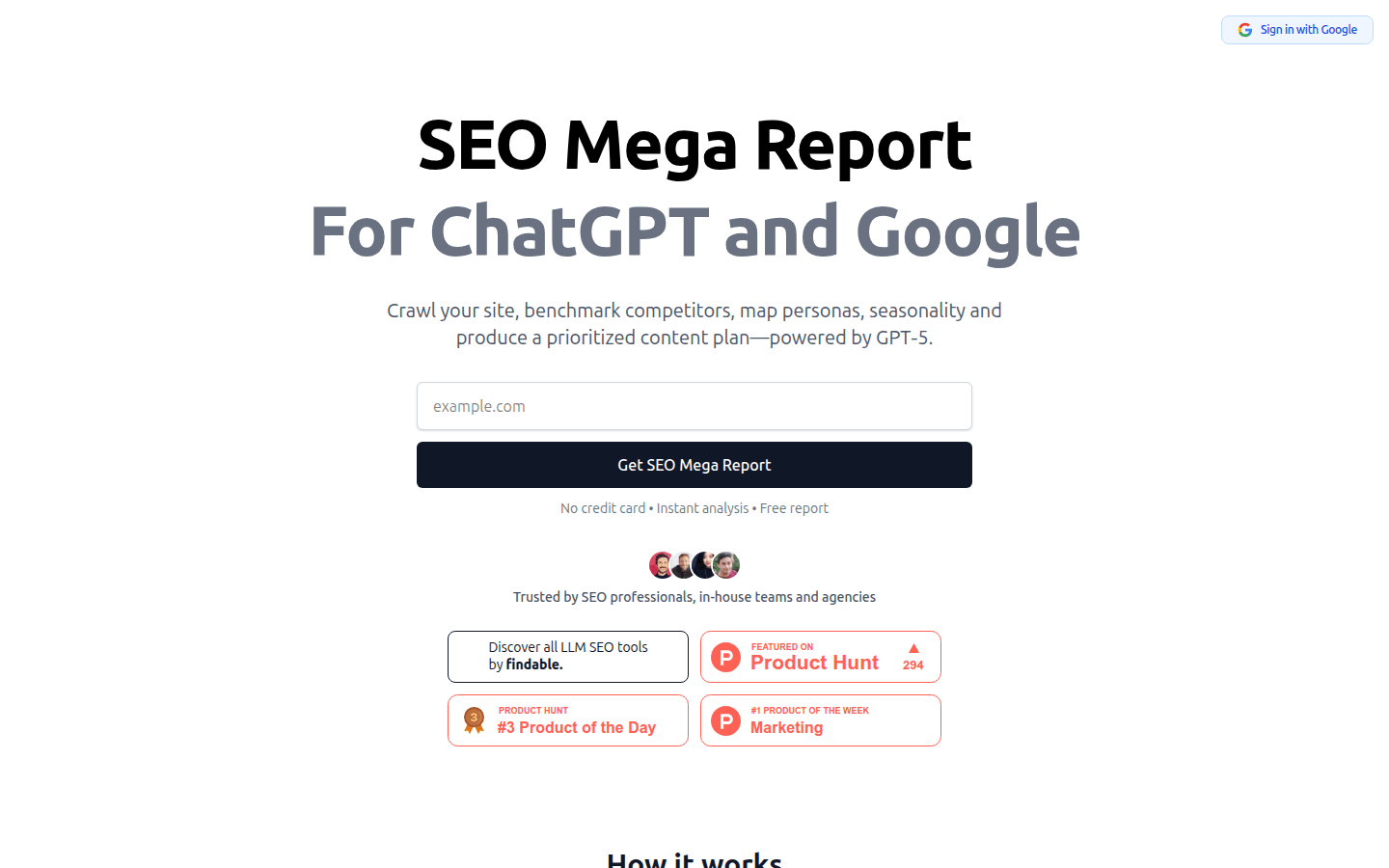 SEO Mega Report is an advanced SEO tool that helps users conduct comprehensive website optimization analysis. It is designed to assist SEO professionals, in-house teams, and agencies in improving their online visibility and performance. The tool leverages GPT-5 for advanced analysis, enabling users to generate detailed reports with competitor insights and actionable recommendations.