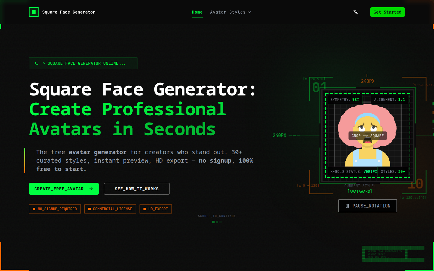 Ever noticed how most platforms display profile pictures as circles? That cute cat photo loses its ears when cropped! Square Face Generator solves this by designing avatars meant to shine in their full square glory—perfectly framed for Twitter verification badges, Discord bots, and GitHub profiles.