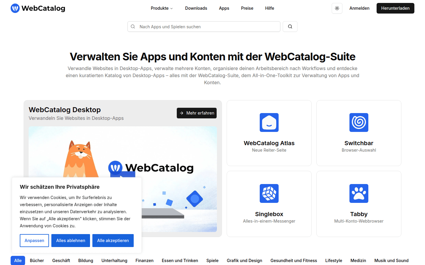 WebCatalog is a versatile desktop client software that helps users manage and organize their applications seamlessly. With tools like Tabby, WebCatalog Desktop, and WebCatalog Atlas, it provides a unified platform for application management. The software is designed to boost productivity by offering intuitive features and customization options.